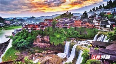看水,可以于“挂在瀑布上的千年古镇”芙蓉镇里,看“银河浩瀚从天落,万斛珍珠处处飞”。也可以在“山猛似虎,水急如龙”的猛洞河,看有十里绝壁,十里瀑泉,十里画卷,十里洞天。