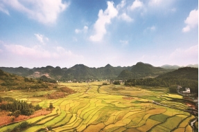 春种一粒粟,秋收万颗子。红石林的秋天是金黄色的,田间地头的大片稻田逐步成熟,满眼望去,都是丰收的颜色。