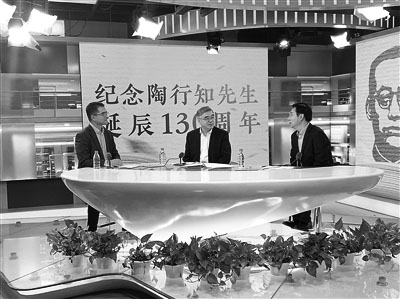 10月18日,是陶行知先生130周年诞辰纪念日。中国陶行知研究会会长朱永新(中)、南京市浦口区行知教育集团总校长杨瑞清(左)和北京市语文教研员连中国畅谈“今天,怎样读懂陶行知”, 探寻陶行知教育思想对当代教育的影响和启示。