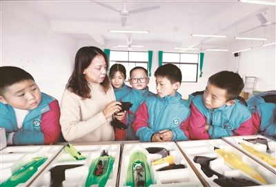 11月12日,资兴市第一完全小学老师在为学生讲解航海模型知识。自“双减”政策实施以来,该市各中小学充分利用课后服务时间,开设航海模型、车辆模型、机器人编程设计等特色科技课堂,激发学生科学探索精神。 李科 摄影报道