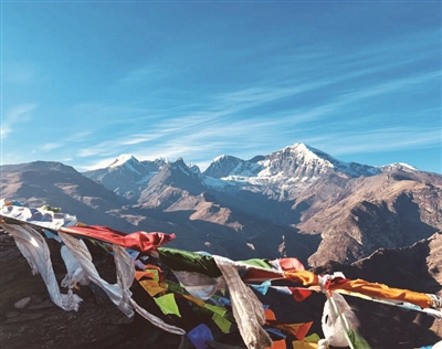 穿越卡久景区,在雪山指引下一路蜿蜒攀登,位于措美县的恰拉脱岗雪山直入眼帘,最为夺目。崇山峻岭之间,雪山巍然屹立,圣洁而壮美,让人留恋不已。