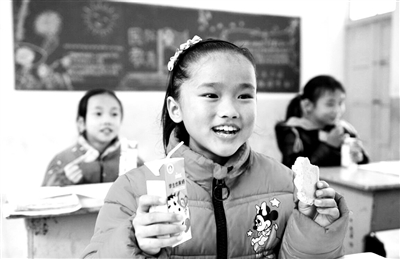 11月30日,城步苗族自治县儒林镇浆坪中心学校,学生在吃提标后的营养餐。今年下学期起,国家开始将农村义务教育阶段学生营养餐标准由4元提高到5元。让农村学生逐步从“吃得饱”向“吃得营养”转变,全面提升他们的健康水平。 严钦龙 陈海花/摄影报道