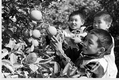 12月6日,永州市冷水滩区伊塘学校的学生在劳动实践基地采摘脐橙。自“双减”政策实施以来,该区各中小学积极做好劳动实践活动,做好双减下的综合实践教育的“加法”。