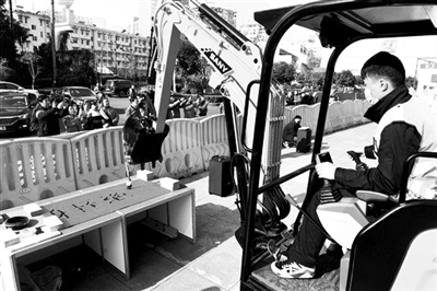 12月20日,挖掘机手正操控挖机写书法。当天,为期3天的长沙市首届职业技能大赛启幕,大赛以“技攀高峰 能行天下”为主题,来自各县(市、区)的10支代表队、 600多名选手,围绕3D打印、5G技术、移动机器人、汽车技术等30个项目比拼才能,一展新时代长沙技能人才风采。 据新湖南