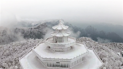 连日来,普降瑞雪的张家界天门山再次披上了洁白的玉衣,给它的美增添了独特的风采,变成了白雪皑皑,银装素裹的世界。日出、云海、雾凇、佛光交相掩映,吸引了不少游客上山赏雪。