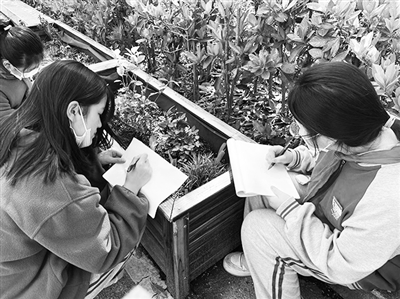 为配合疫情防控,长沙中小学寄宿学校寄宿学生上周末不回家,师生员工非必要不出校。3月28日,阳光灿烂,湖南师大附属思沁中学组织学生在校园中写生,用手中画笔描绘繁花似锦的春天。