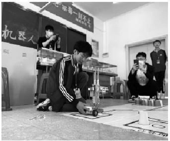 4月8日,蓝山县四完小临时搭建的机器人比赛场地内,一场市级线上机器人比赛正式拉开帷幕。小选手们两两组队,带领自己的机器人,向路障清理、高塔异物清除、生活垃圾回收等7个固定任务、1个关联任务、2个随机任务发起挑战。比赛过程中,孩子们全神贯注,配合密切,显示出创新意识、动手实践能力和团队协作精神。