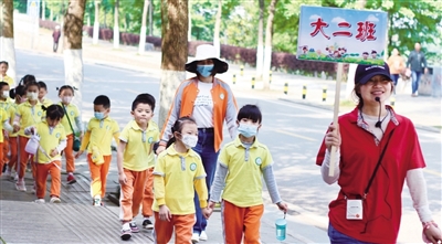 幼小衔接,我们在行动!连日来,湖南各县市区幼儿园积极开展各类幼小衔接活动,引导幼儿们在身心、生活、社会、学习方面做好入学准备。图为平江县幼儿教育中心各园有序组织幼儿们参观小学。 周玉 摄影报道