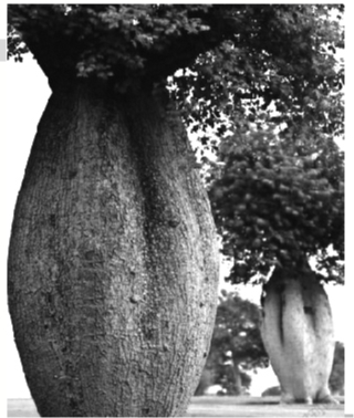 生长在澳大利亚的澳洲梧桐,造型非常奇特,数米多高的树干,中部膨大,上下较细,膨大处的直径,几乎接近树冠的尺寸。远远看去,它就像一只插满花卉的大花瓶。在雨季来临时,发达的根部如同水泵一样,拼命吸水,并贮存在膨大的树干里面。到了旱季,就用“大肚子”里的水来“解渴”,安然度过漫长的无雨期。瓶子树正是利用自身的“开怀畅饮”的贮水本领,在严酷的气候条件下,长得枝繁叶茂。 据《科学之友》