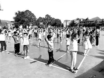9月27日,记者在桂东县沙田第一完小看到,孩子们在偌大的操场上做课间操,校园内阅览室、语音教室、多媒体电脑室等功能室一应俱全。
