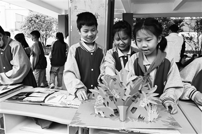 2021年秋季投入使用的郴州市一完小城东分校,投资1.5亿,现有18个教学班,800余名学生多为进城务工人员子女,一些学生刚入校时不够自信,礼仪卫生习惯有待提高。为了激活孩子们的精气神,该校党支部书记段雪毅将书香校园建设作为了学校工作的重点。学校通过“班班有书声”经典诵读、“我从书中来”人物模仿秀、春苗书屋立体绘本书展等活动,让书香弥漫校园。如今,琅琅书声时时环绕着校园的每个角落,活力校园为孩子们铺上了自信、善思、博爱的人生底色。