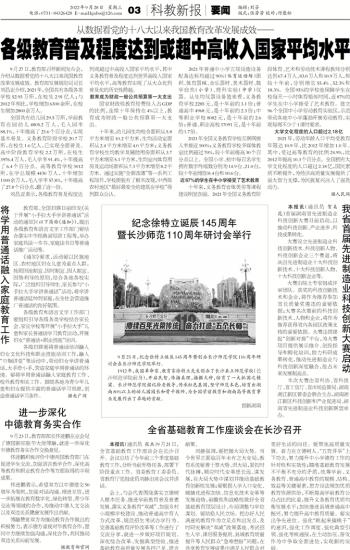 纪念徐特立诞辰145周年暨长沙师范110周年研讨会举行