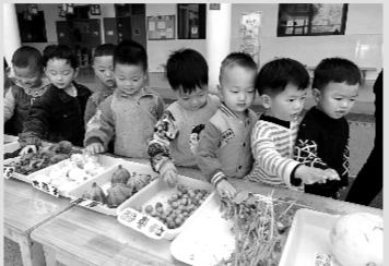 金灿灿的玉米、圆鼓鼓的柿子、火红的辣椒、像小刺猬的栗子……老师带孩子们收集各种瓜果食材,让幼儿体验收获的乐趣。