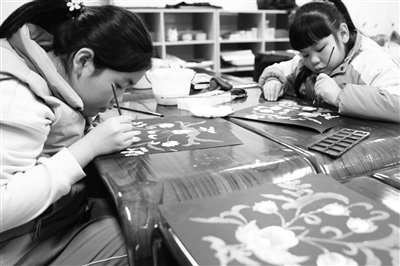 图为“双减”政策实施以来,湘西土家族苗族自治州溶江小学将湘西苗画引进课后服务社团活动,让学生传承非遗文化。 彭彪 摄影报道