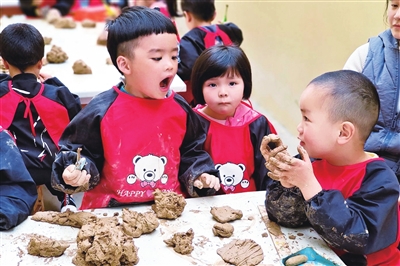 近日,通道侗族自治县幼儿园开展了玩泥巴游戏。孩子们通过揉、捏、拍打,在一方充满泥土气息的空间里,释放天性,体验乐趣。 李尚引 摄影报道