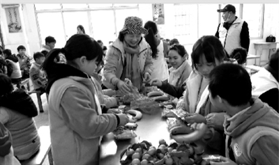 2月12日,永州市冷水滩区萱娅暖阳学校内,十多名志愿者与孩子们交流趣事,分享零食,孩子们露出灿烂的笑容。蒋敏 杨妮 摄影报道