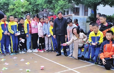 在学校,曹丽君并不是只坐在办公室“敲键盘、写总结”,而是经常出现在孩子们的周围,让他们感受到朴素纯真的陪伴,这也是全校学生都愿意叫她“校长妈妈”的原因之一。