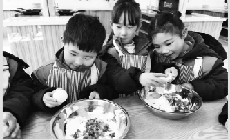 2月27日,临湘市长安寄宿制小学厨艺教室里热火朝天,搅拌面粉、打鸡蛋、煎饼,一年级二班同学们分工合作,将煎好的鸡蛋饼分给老师品尝。