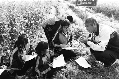 3月30日,浏阳市高坪中学80余名中学生在6名老师的带领下,来到油菜种植基地里,开展“一季春风暖 陌上菜花香”劳动教育主题月活动。图为生物老师周开明教学生认识油菜花结构。