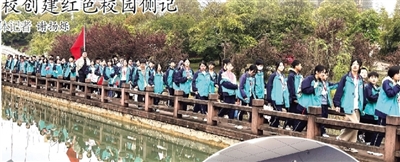 除了以体育运动锤炼学生的身体素质外,为丰富红色活动载体,该校将红色文化融入到书法、诗歌等表演形式中,让学子在红色文化的浸润中不断成长。