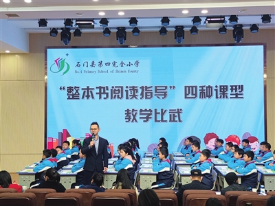 课内阅读,主题教学有成效。学校在石门县率先推动语文主题学习阅读,并于2015年加入北京华樾集团“小学语文主题学习”实验项目,教师们采用单元主题教学,通过一篇带多篇的形式,将语文主题丛书巧妙融入语文课堂,整合教学,引导学生自由阅读,实现课内海量阅读。目前,学校已经成为该项目的全国示范校。