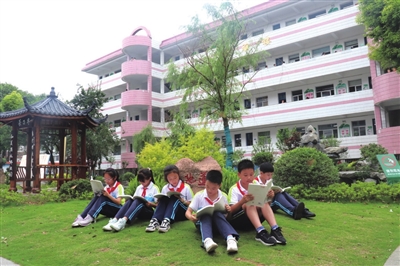 初夏的风,吹开了石门四完小荷塘的一池涟漪。池边,学子们迎着晨光,或倚或立,捧书而读,浓郁的书香氛围扑面而来。漫步校园,操场上、教室里、阅览室、图书室……阅读的身影将校园分割。