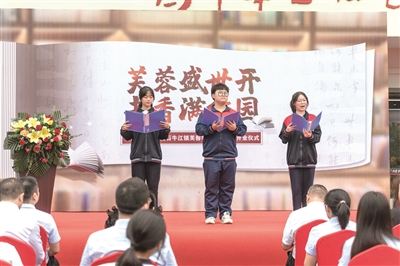 阅读课程是学校书香校园深度发展、走向学科的重大行动。该校以班主任、语文教师和文学社成员为主体,以校刊为载体,引领全校开设“阅读课堂”“专业文学写作课堂”,并建立长效阅读、常态活动、评价机制,从而让更多学生走进书香世界。