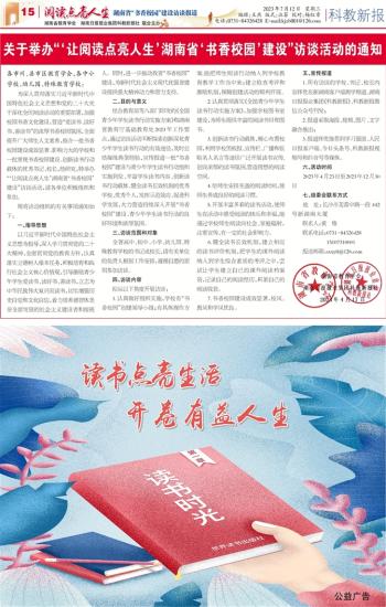 第15版:阅读点亮人生湖南省“书香校园”建设访谈报道