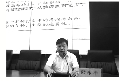 有个高三男学生每次作文总有10个错别字,同学们调侃他“错别字大王”。欧乐平没有批评这个学生,而是每次把作文中的错别字作具体统计,指导学生列表比较分析,逐步改正,并在批语上介绍了纠正错别字的“五多”经验:多抄写、多留心、多比较、多推敲、多查字典。该学生按“五多”方法执行,经过一个学期努力,到高三第二个学期每次月考,他写的作文没出现错别字。更让他自己意想不到的是高考作文得了50分。
