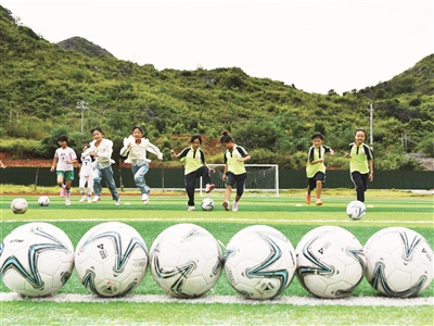 新学期,江永县各中小学校开设丰富多彩的科普、文体、艺术、劳动等特色课后服务课程,丰富了学生的校园文化生活,让他们健康快乐成长。图为9月19日,江永县潇浦镇芙蓉学校的学生在开展足球训练。 田如瑞 摄影报道