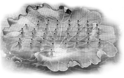 开幕式上,观众在现场大屏上看到的“潮汐树”,正是钱塘江大潮退去后留下的潮沟。而为了生动展现潮水的形态,团体还大量运用流体计算技术,生成了三维立体的“浪潮”。