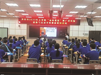 在津市市一中的一间教室里,学校历史组的教师齐聚一堂,正在聆听教师汪勇杰带来的公开课《大一统视角下秦汉统一多民族封建国家的建立与巩固》。