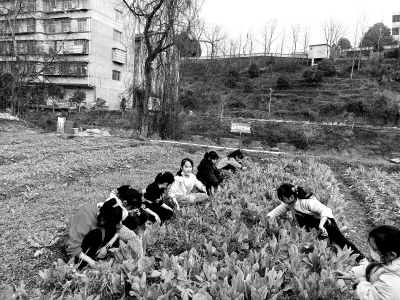 几百米开外的楠木坪小学,劳动课则是另外一番景象。学校的劳动实践基地一派生机勃勃景象,齐整的菜地里按班分配,翠绿的菠菜、鲜嫩的大葱、才冒头的小白菜等长势喜人。孩子们屈着腿、弯着腰,有模有样地在田园课堂上着农耕课。“等这些菜成熟,我们就能采摘了去烹饪课堂自己动手炒,还能拿到食堂或市场去卖钱充当班费。”孩子们得意地向记者展示他们的劳动成果。