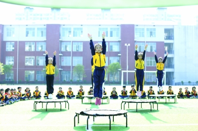 为丰富学生的课余生活,宁远县德源小学将跳蹦床、跳皮筋、丢沙包等一系列游戏活动引入课间,为青少年健康成长赋能。12月4日课间时分,伴随着音乐,学生们在蹦床上实现自由弹跳。 刘丽 摄影报道
