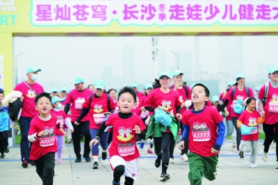 12月10日,长沙市第十一届全民健身节暨2023长沙(冬季)走娃少儿健走大赛在马栏山鸭嘴公园鸣枪开走。4800人奔行在浏阳河和湘江之畔,挑战徒步12公里。“走娃”活动是中国本土原创城市亲子健走活动品牌,由湖南日报报业集团于2019年创办。活动已成功举办9次,累计参与人数超70000人次。 黄帝子 摄影报道
