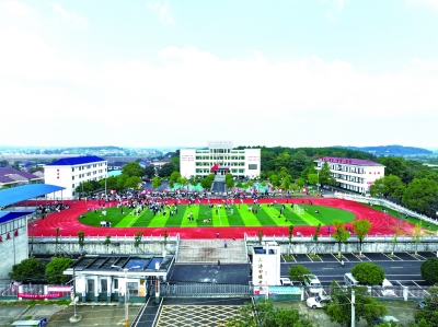 渌田镇中学的建筑颇具特色。两层台阶让整个校园错落有致。 “拾级而上,步步登高。”学校党支部书记、校长彭海龙对记者说:“当初的建筑设计就含有这个寓意。”