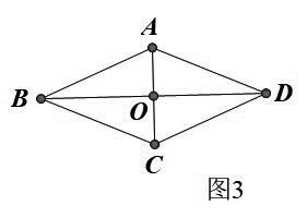 案例八 如菱形的面积公式,图3菱形ABCD的对角线相交于点O,则菱形的面积等于1/2AC×BD。