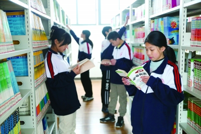 为满足师生们的阅读需求,学校挖掘每一个可以利用的空间,设立了图书阅览室、阅读长廊等开放阅读场所。学校近几年来争取上级行政部门投入图书购置经费达百余万元,现藏书195000余册,涵盖了文学、艺术、科学等多个领域。年均图书增长率5%以上。5000余平米高大敞亮的图书阅览楼、阅读长廊是孩子们课余生活的好去处,学生们自由阅读、共享收获、交流心得、分享见解,让阅读成为校园一道靓丽的风景线。