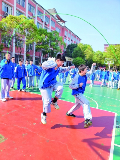 长沙思沁学校孩子们在操场上欢乐跳绳