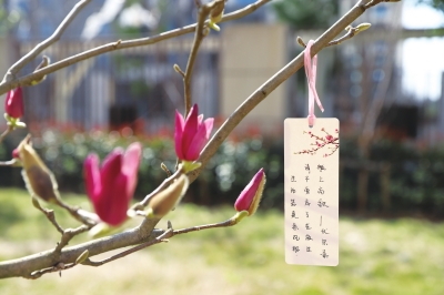 常德市武陵区中建育英小学,孩子们为新树苗挂上书签。 赵易/摄 |