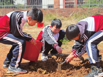 株洲八达小学师生开展义务植绿护绿实践活动,用实际行动表达对植物的尊重。 张荣/摄 |