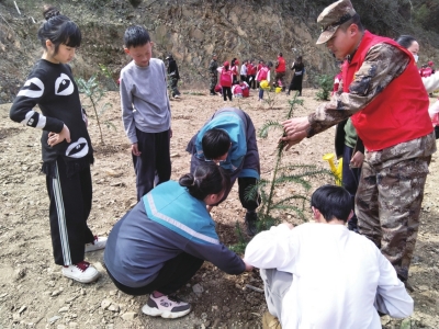 嘉禾县博雅学校,党员教师带领学生志愿者前往学校周边开展义务植树活动,播撒绿色希望。 谢婷/摄 |