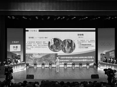 3月13日,湖南省首届大学生职业规划大赛冠军争夺赛暨颁奖典礼在湖南师范大学附属中学举行,本次冠军争夺赛环节由主题陈述、评委提问、天降offer三部分组成,来自两大赛道的高教组、职教组成绩排名第一的4名选手,在这里畅谈职业理想,规划未来航向。图为高教组选手华香在讲述自己的教师梦。