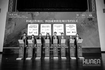 助力母校,贡献湖南。4月6日,湖南大学举行校友企业家联谊会成立典礼,13个湖南大学校友服务湖南的项目现场签约,签约总金额45亿元。其中,湖南同发投资有限公司董事长、2010级校友李鹏程捐赠人民币1亿元支持湖南大学科创港校区建设。此次签约还包括天智长沙研发中心项目等8个校友回湘投资项目,湖南大学·天阳科技金融超算联合创新中心项目等4个校企合作项目。图为签约现场。