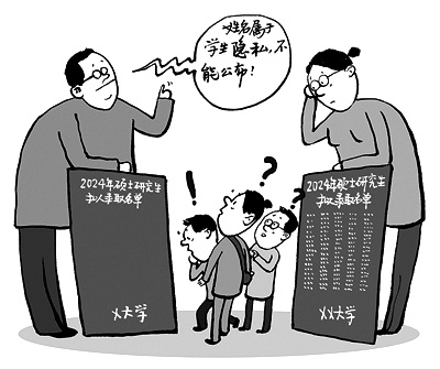 近日,上海电力大学数理学院公示的2024年硕士研究生拟录取名单中,学生姓名却没有出现,这引起网友诸多质疑。研究生招生单位必须严格遵守国家层面明确的招生规定,不能滥用招生自主权。推进招生信息公开,把招生过程置于阳光下,是树立学校公信力的利器,各院校必须进一步规范自主招生行为。 王铎