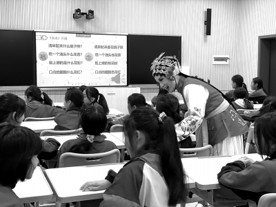 5月6日,一堂别开生面的戏曲课走进洪江市隆平学校五年级课堂,戏曲教师李静身着华丽的戏服、化着精致的妆容,通过“边演边讲”的形式,让同学们近距离领略京剧的魅力,感受国粹的韵味。