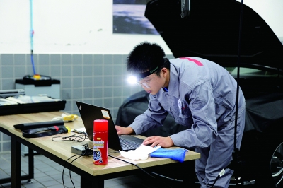 湖南汽车工程职院学子在参加湖南省职业技能大赛汽车技术赛项比拼。