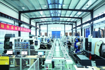在湖南工业职业技术学院智能制造实训中心,学生正开展智能制造生产单元联调实训。