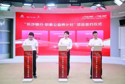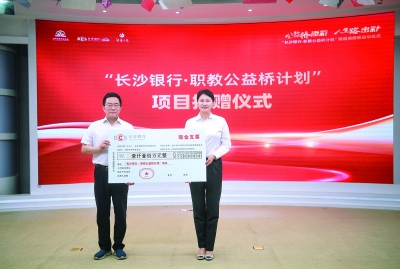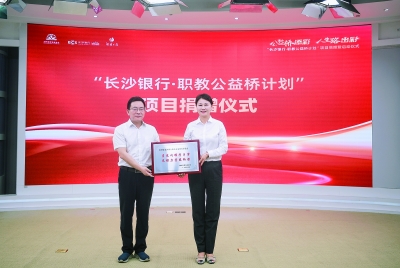 2023年12月,教育部、湖南省人民政府联合出台《关于进一步深化职业教育产教融合服务国家重要先进制造业高地建设的实施方案》。以此为背景,在省教育厅指导下,长沙银行、省教育基金会、湖南日报社联合发起“长沙银行·职教公益桥计划”项目,长沙银行通过专属公益组织长沙市长沙银行快乐益家慈善基金会捐赠1100万元人民币作为项目资金。