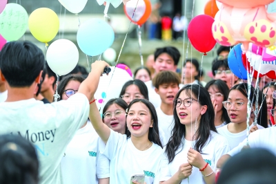 6月2日,临近高考,蓝山县第二中学开展快乐减压迎高考活动,通过喊口号送祝福、齐声高歌、放飞气球等形式,帮助高三学子释放考前压力,以轻松、自信的心态迎接高考。图为学生在喊口号送祝福。